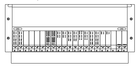 19 inçlik bir şasi, modüller için 21 yuvaya sahiptir (her biri 4TE genişliğinde). Bu yuvalar, şasinin sol tarafından başlayarak 1'den 21'e kadar numaralandırılmıştır. IOCHAS-0002R'de, 1'den 18'e kadar olan yuvalar IO modülleri için kullanılabilir. Bunlar çiftler halinde yapılandırılmıştır. 19 numaralı yuvanın arkasındaki kör ön kısımda IOBUS-HB2A bulunur. 20 ve 21 numaralı yuvalar IO-0002 modüllerini içerir. IOB-0002R, şasinin ortasında 18 adet IO konektörü sağlar. IOBUS-HB2R, şasinin üst kısmında 18 adet düz kablo konektörü sağlar.
