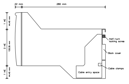 İlk IO şasisi için 1 + 3 + 1 HE, sonraki her IO şasisi için 4 HE (bkz. sayfa 143'teki Şekil 80) 4,5 + 133,4 + 44,5 mm 1,75 + 5,25 + 1,75 inç